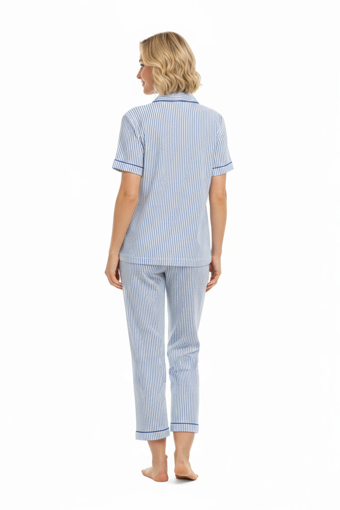 La Cera Pin Stripe Cotton Knit Capri PJ