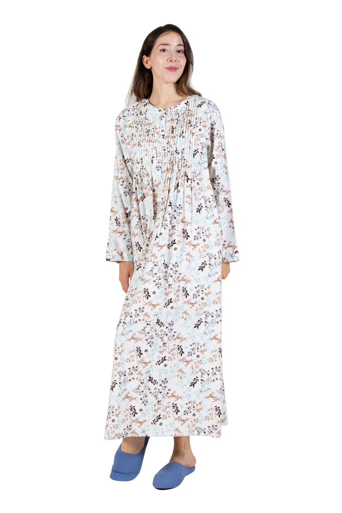 Plus Size Printed Flannel Nightgown With Release Pleats