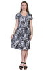 Enjoy the bold pattern and comfortable feel of this La Cera dress. In a feminine artistic floral pattern, this dress features short sleeves and a scoop neckline. Pleats at the neckline bodice create a slightly tapered and a full hemline with plenty of room to move. This wrinkle resistant fabric is perfect for travel.