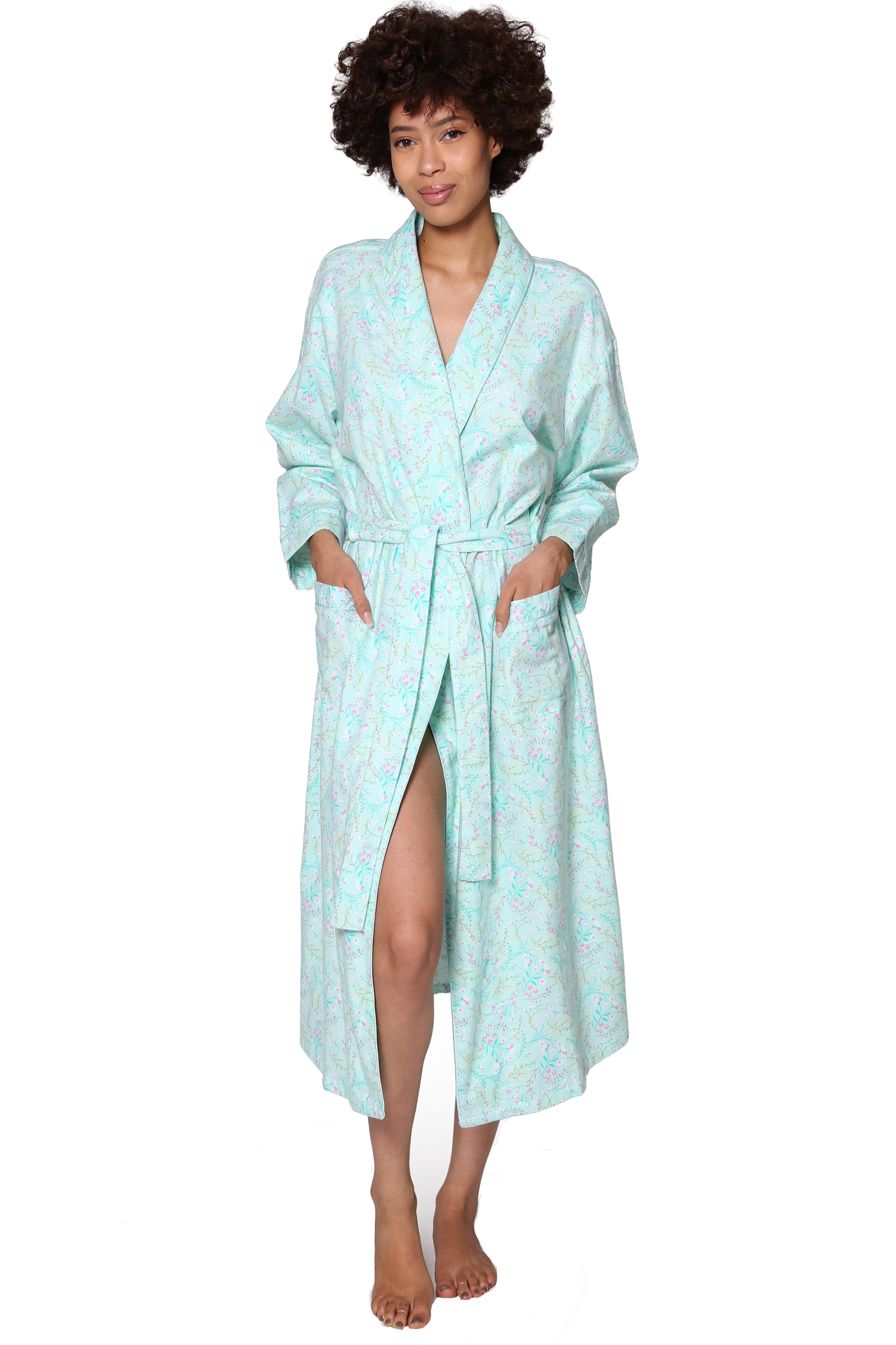 This cozy 100% Cotton Flannel robe from La Cera was crafted with warmth, style, and comfort in mind. This robe features a belt and two front pockets.