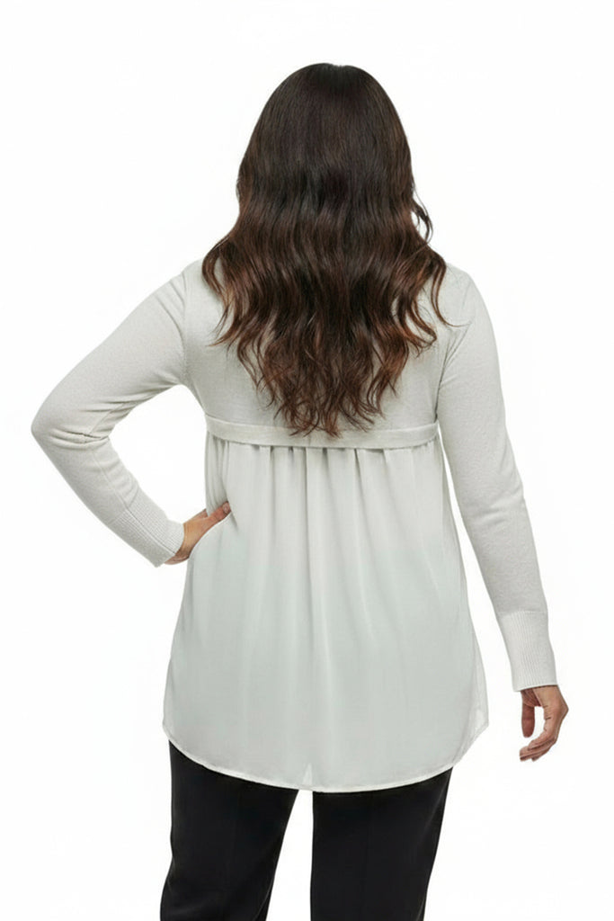 Plus Size La Cera Rounded Neck Sweater Top with Georgette Back