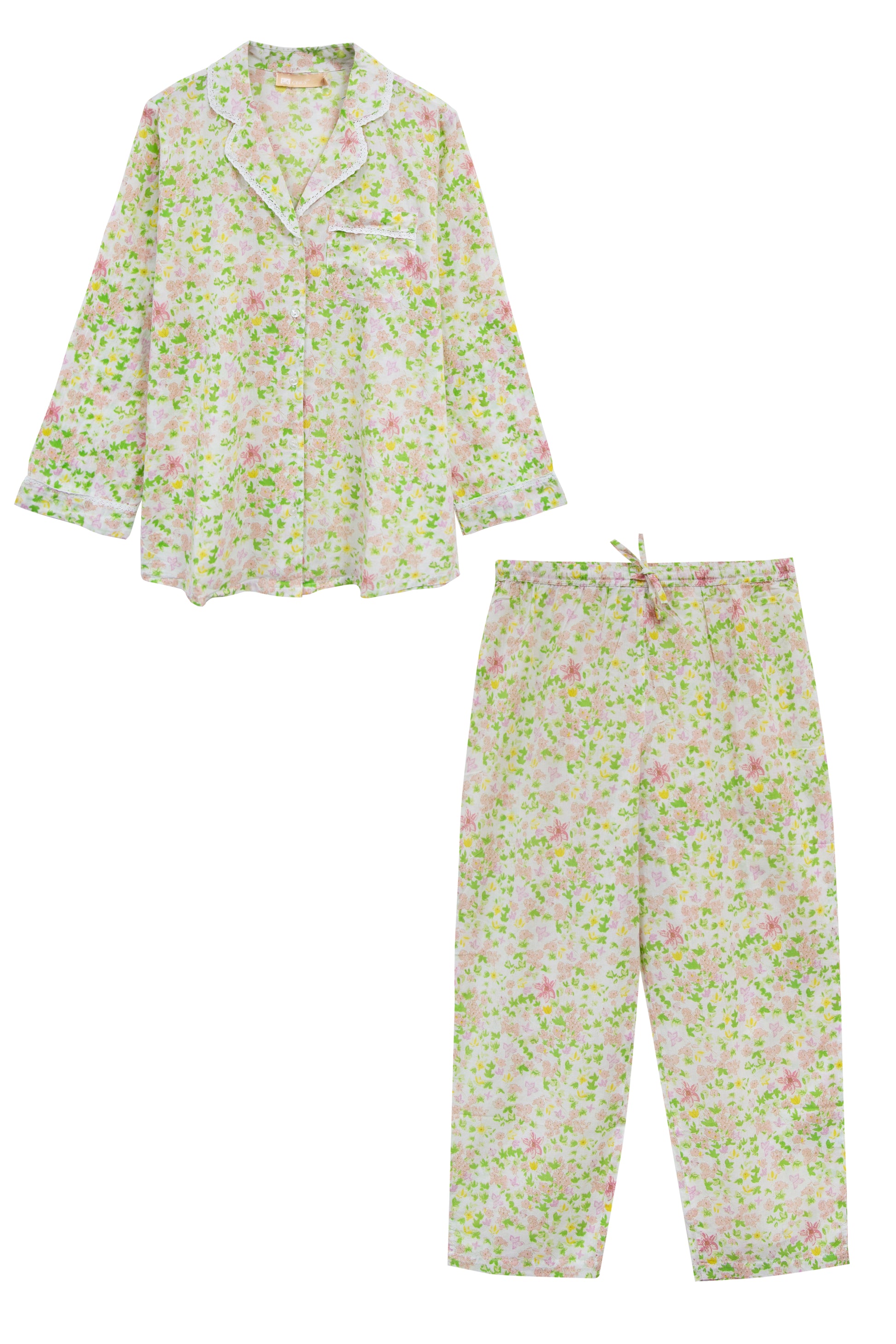 La Cera Long Sleeve White Lime Floral Pajama Set