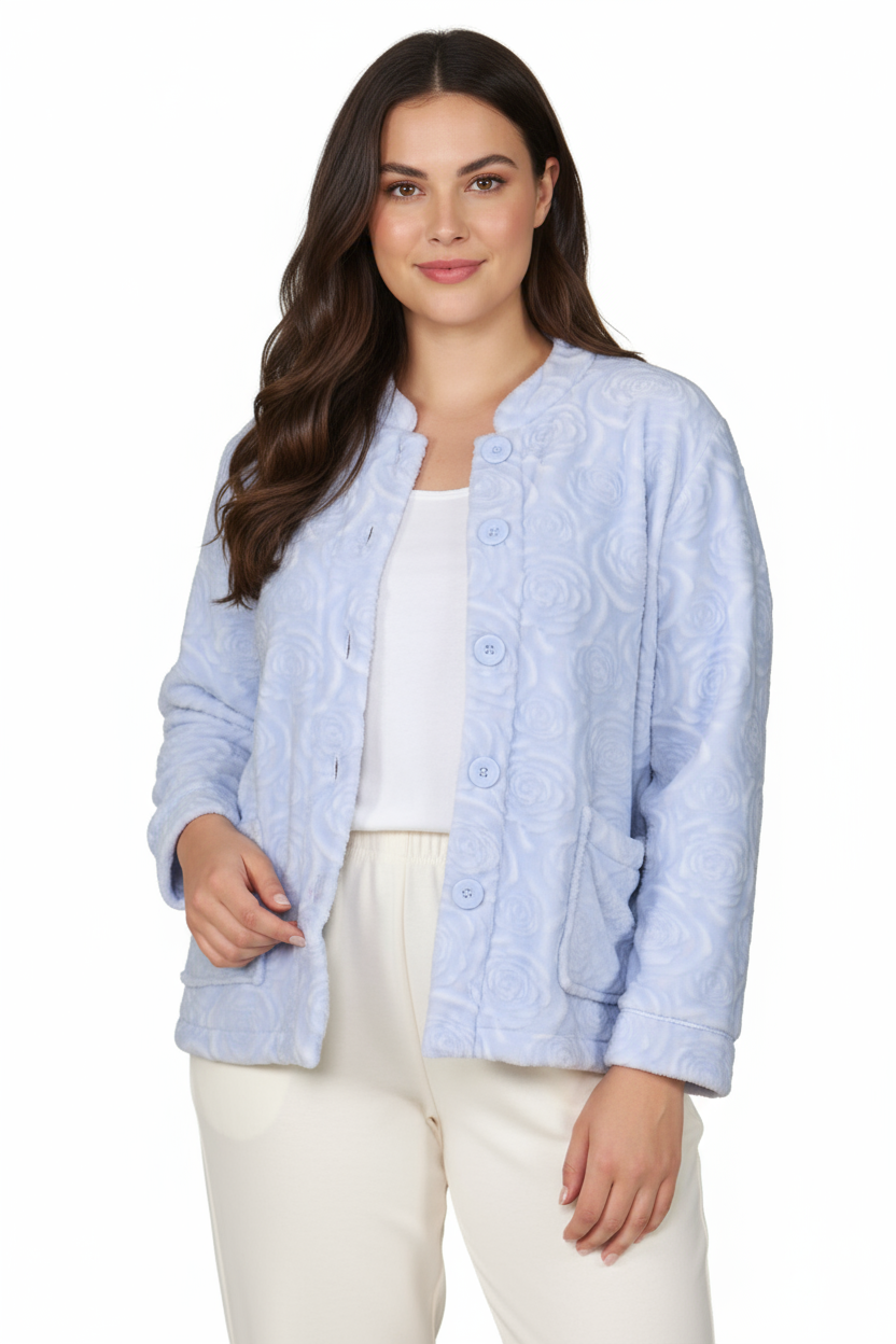I love this bed jacket. The blue heather color is beautiful and very soft. I normally wear a size medium. I purchased this size and it fit perfectly. The bed jacket holds up great in the wash and stays very soft.