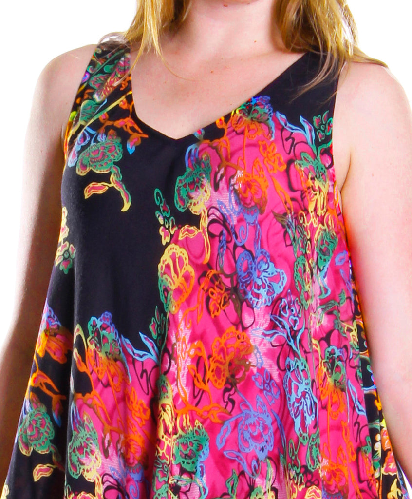 Get the best of both comfort and style with this bold floral print Sleeveless Handkerchief Dress from La Cera.