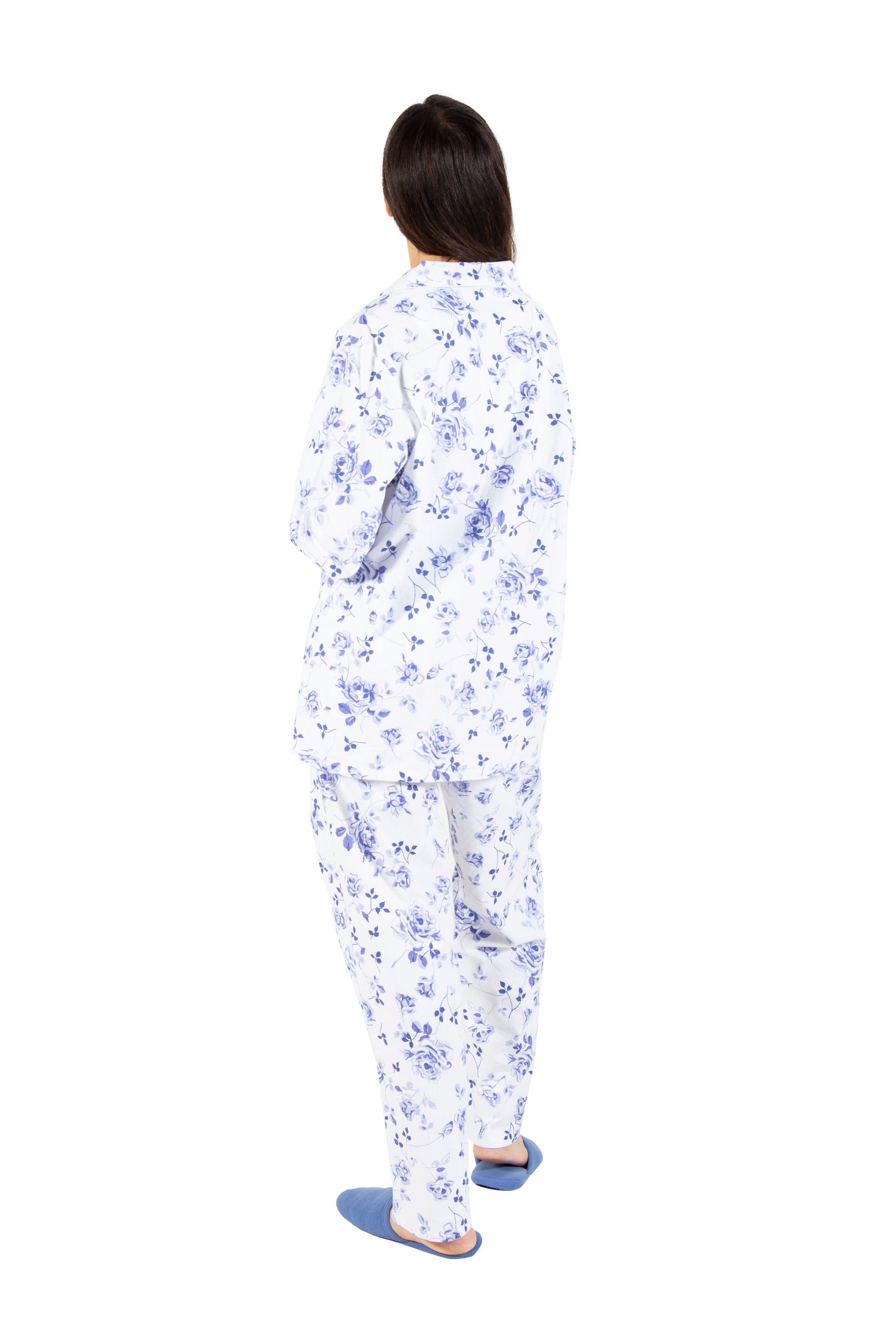Indulge in unparalleled comfort and opulence with La Cera Porcelain Blue Floral flannel pajamas. Impeccably crafted from 100% cotton, these pajamas deliver a supremely soft and cozy experience. The delicate satin accents at the collar, breast pocket, and notched neckline exude a sense of sophistication, while the elasticized waistband ensures a flawless fit for lounging and slumbering. Elevate your evenings with these luxurious and fashionable pajamas. Imported.