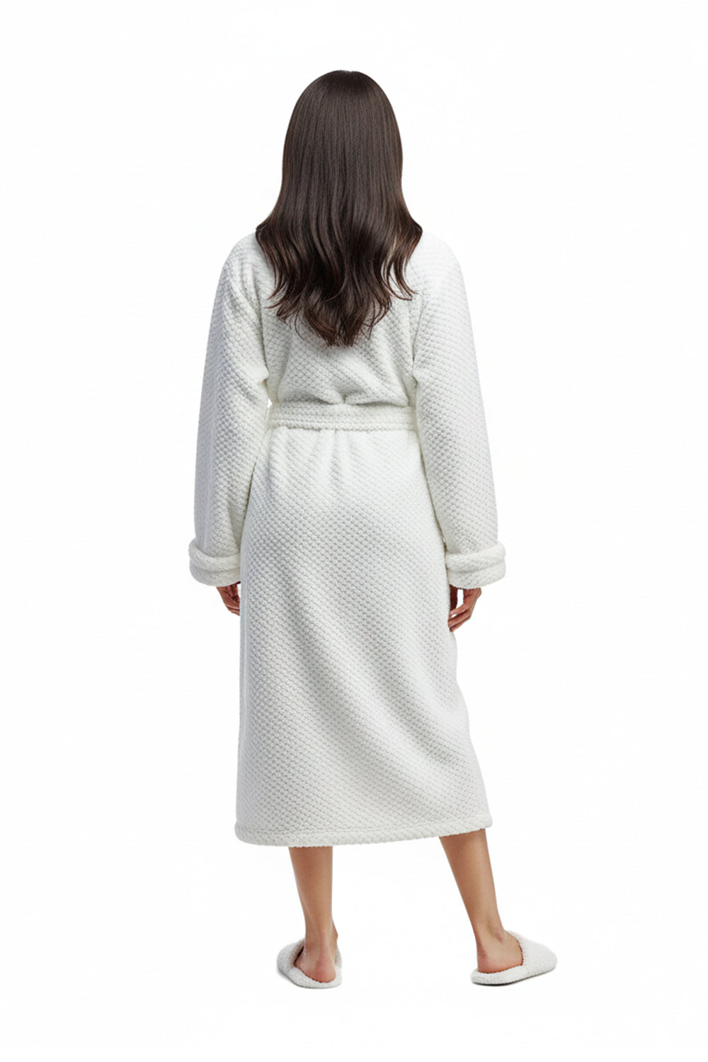 La Cera Textured Full Length Fleece Bath Robe