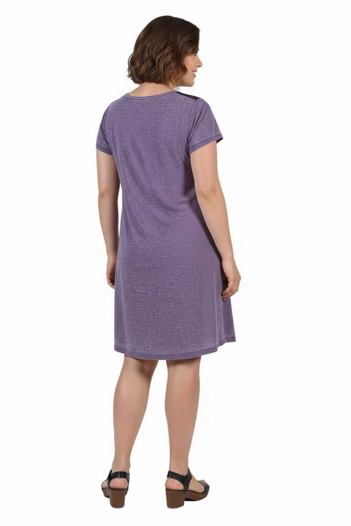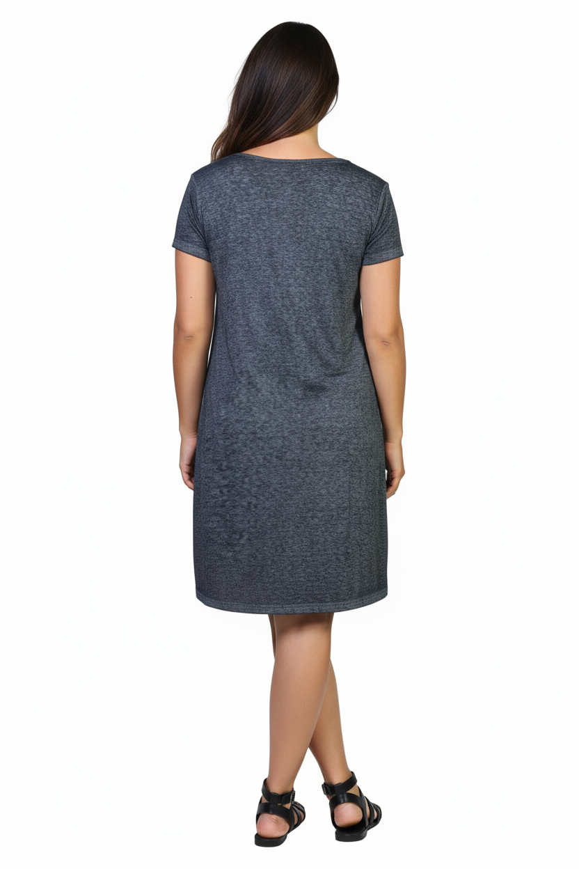 This stylish short sleeve plus size burnout dress is sure to add comfort and style to your wardrobe. Scoop neckline with lace detail at shoulder.