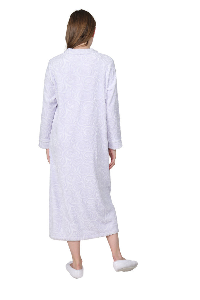 This extra cozy robe features beautiful textured rose fabric and two front pockets for ideal everyday wear. A front zipper closure offers effortless coverage and is accented with a tassel detail. Machine washable.