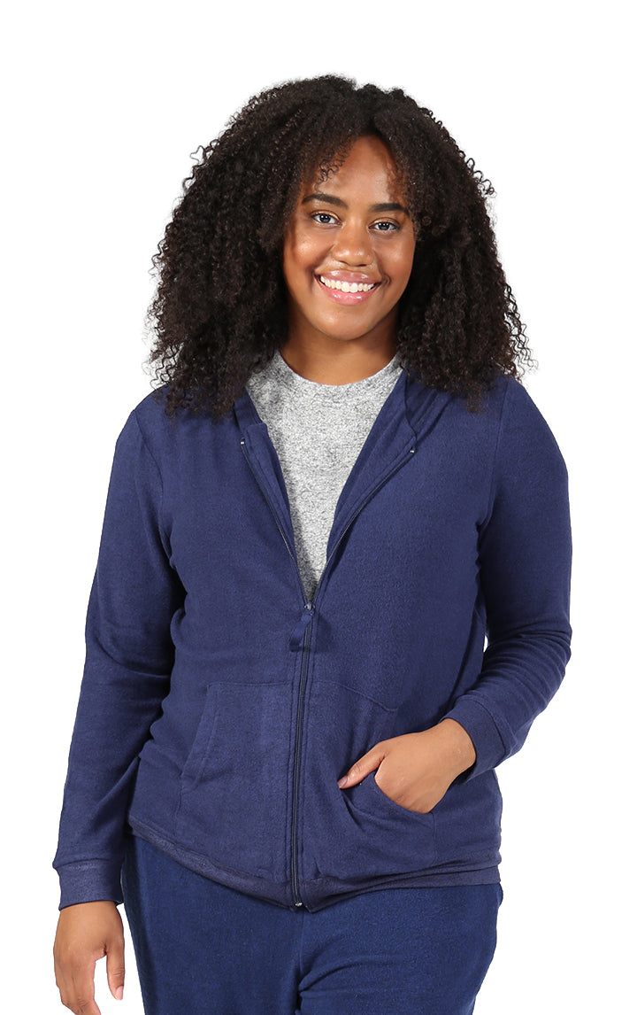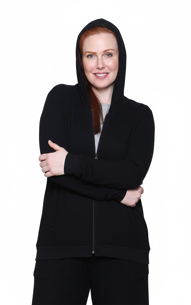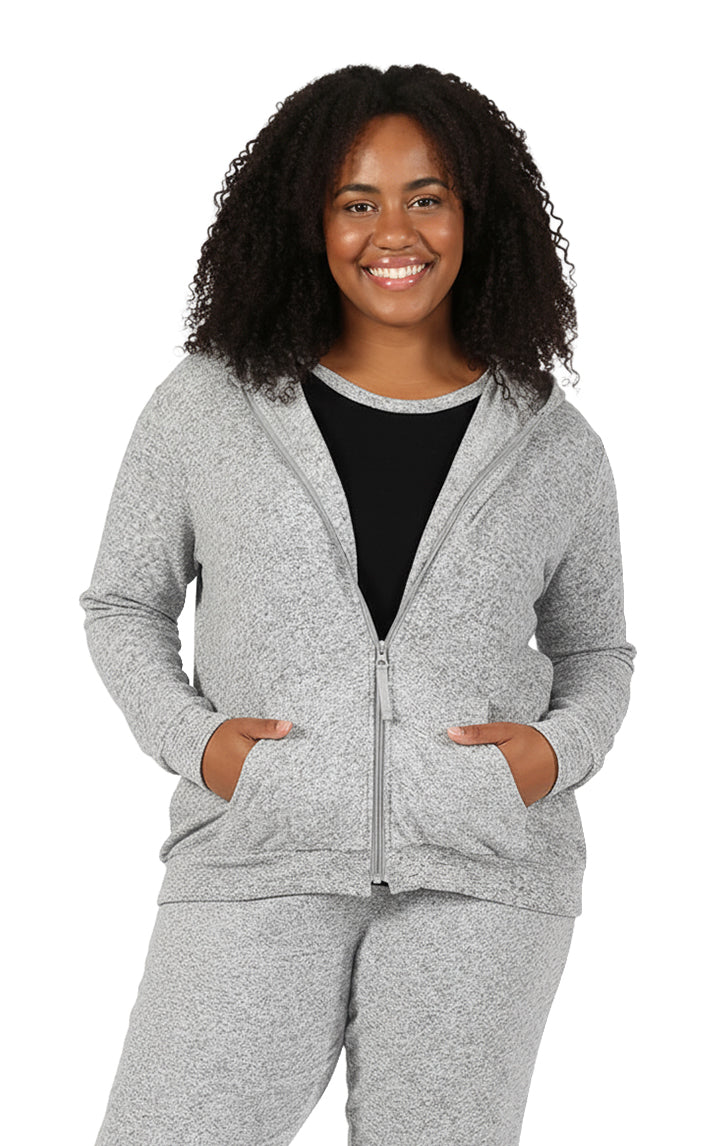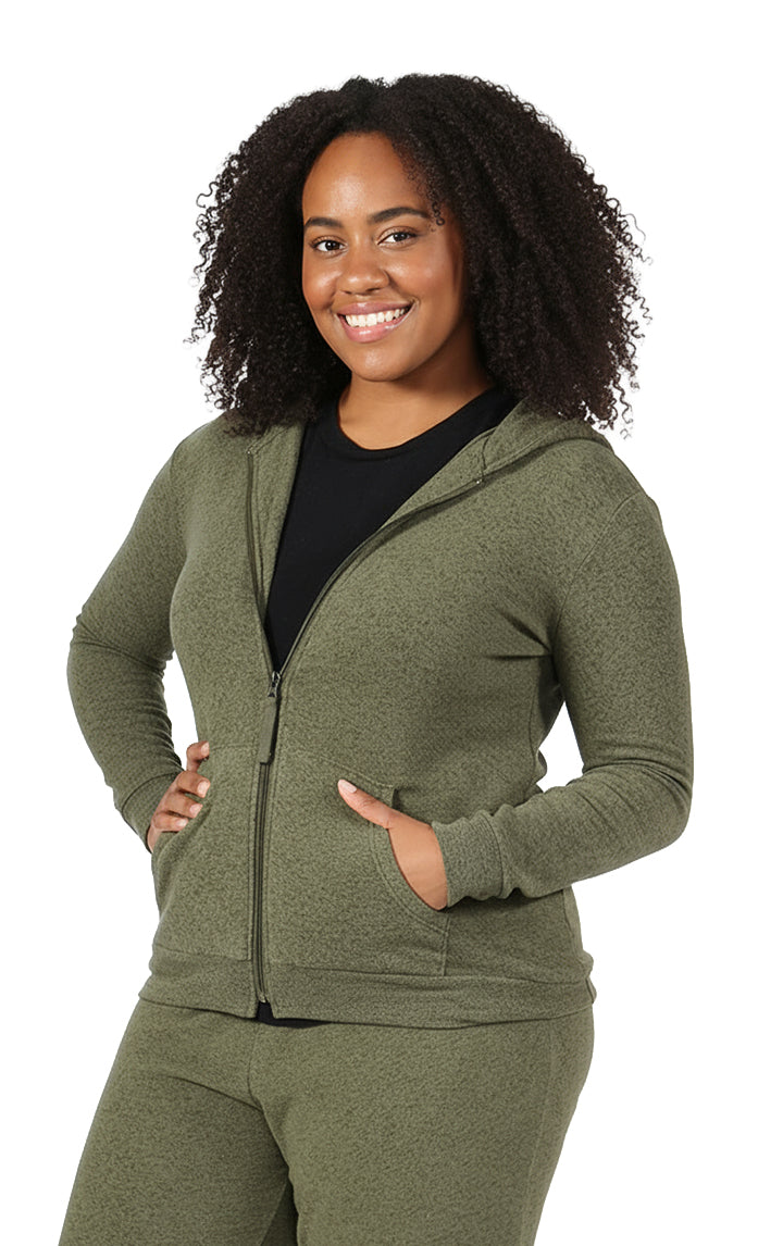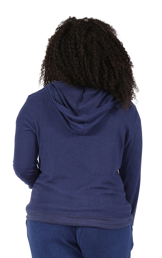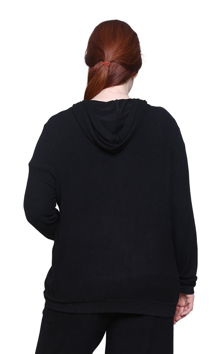 Fashioned with a hoodie, kangaroo pockets and rib trim at the sleeve cuff and waist, this top will become a weekend favorite. The ultra soft rayon blended knit has just the right amount of spandex to always hold its shape. Machine washable. Measures 25" from the top of the shoulder to the bottom of the hem.