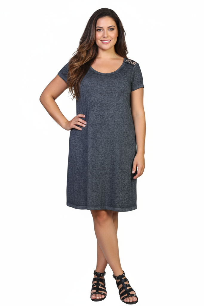 Plus Size Soft & Supple Knit Dress with Lace Trim