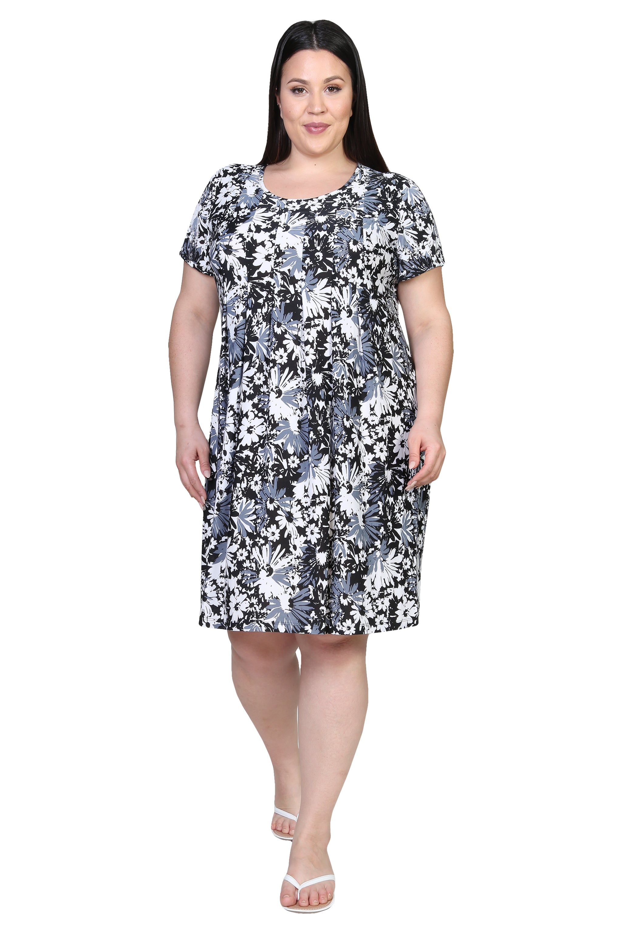 Experience the vibrant and playful style of La Cera with this Plus Size Black and White Print Dress! Made with a soft blend of polyester and spandex, its short sleeves and empire waist silhouette flatter your figure while the abstract floral pattern adds a touch of charm to any occasion. Stand out in style and comfort today! Imported