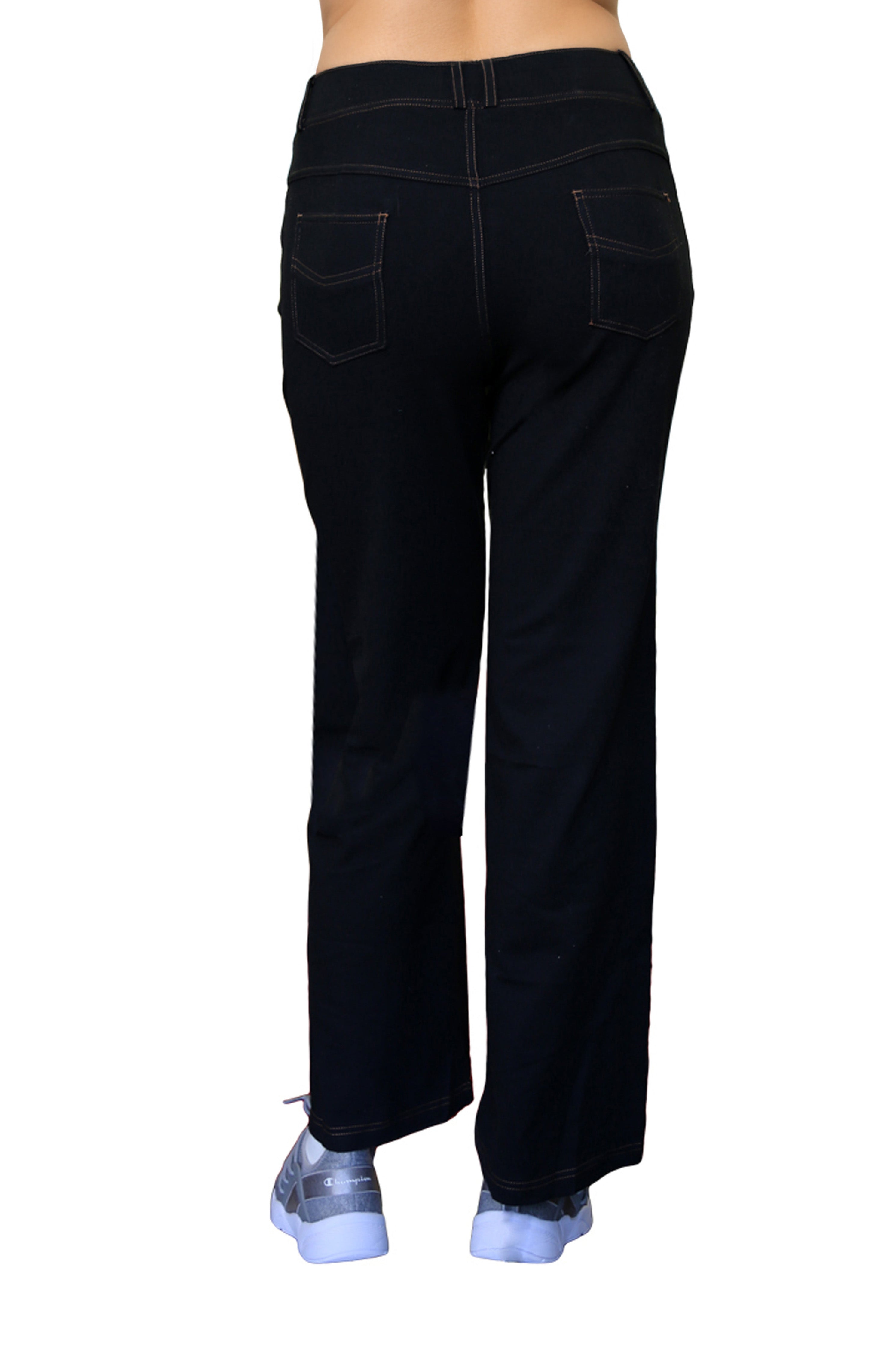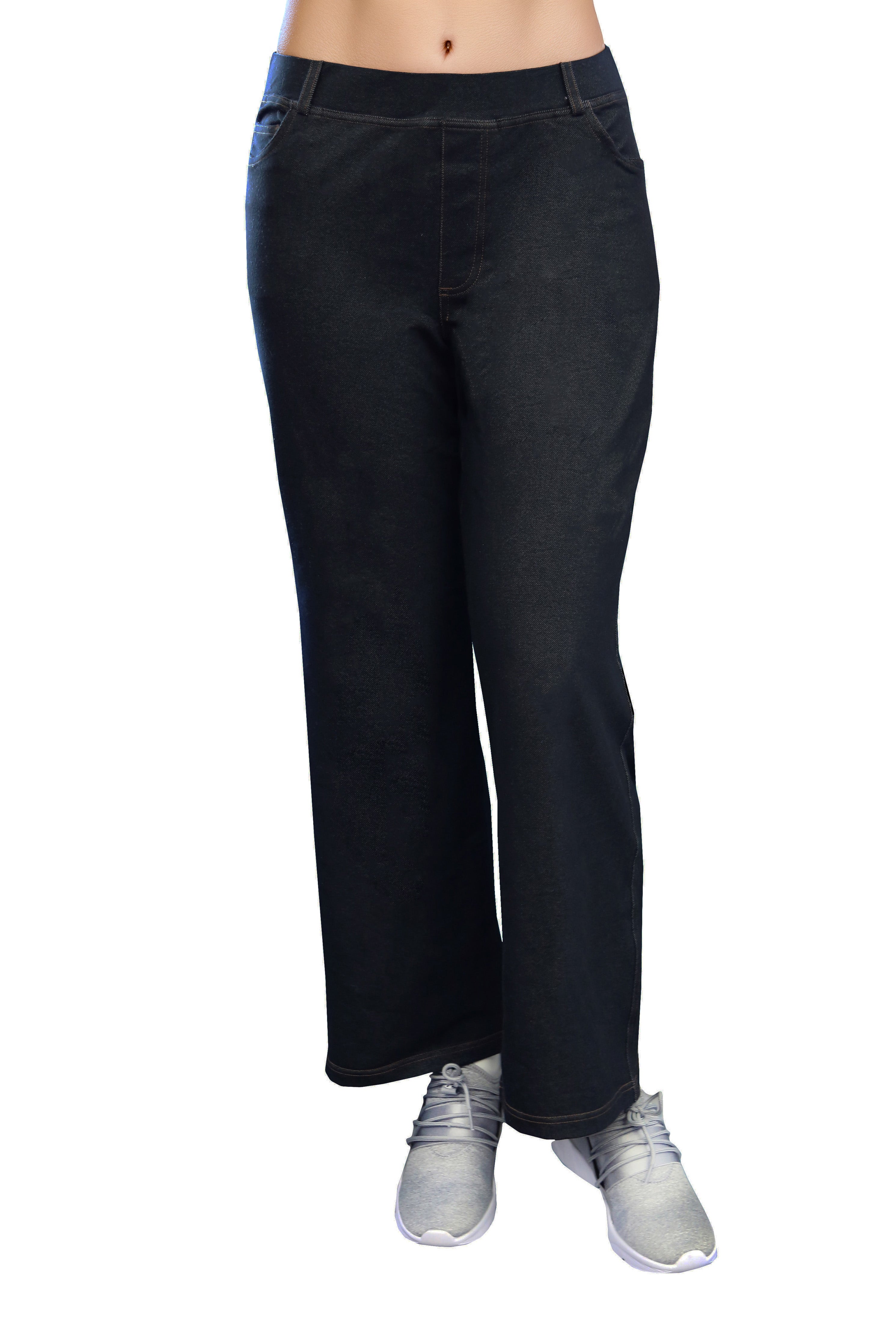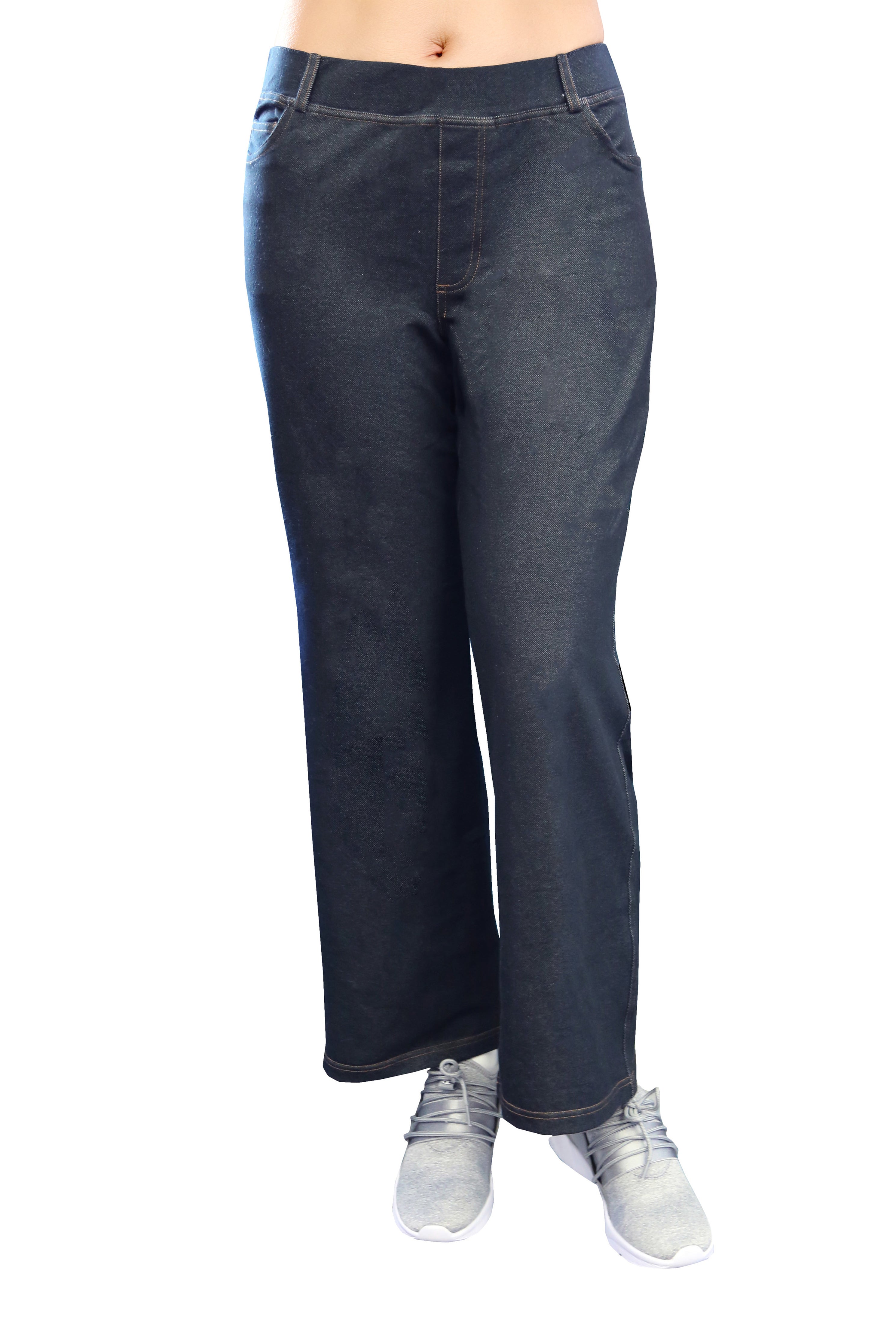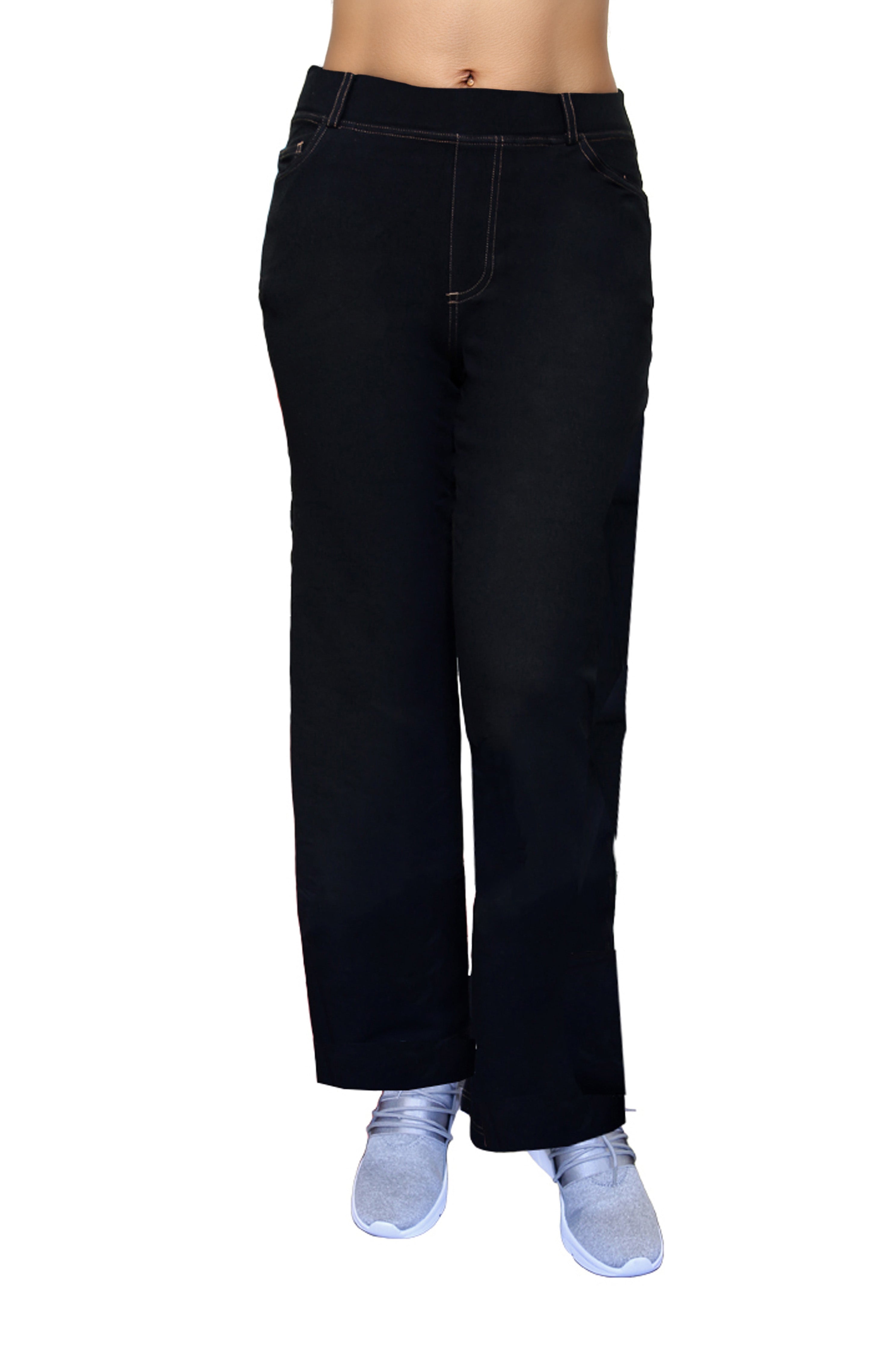 Made of incredibly soft comfort stretch, this pant has the appearance of denim. It features a 2" covered elastic waistband with belt loops and convenient 5 pocket styling with mock fly and contrast stitching