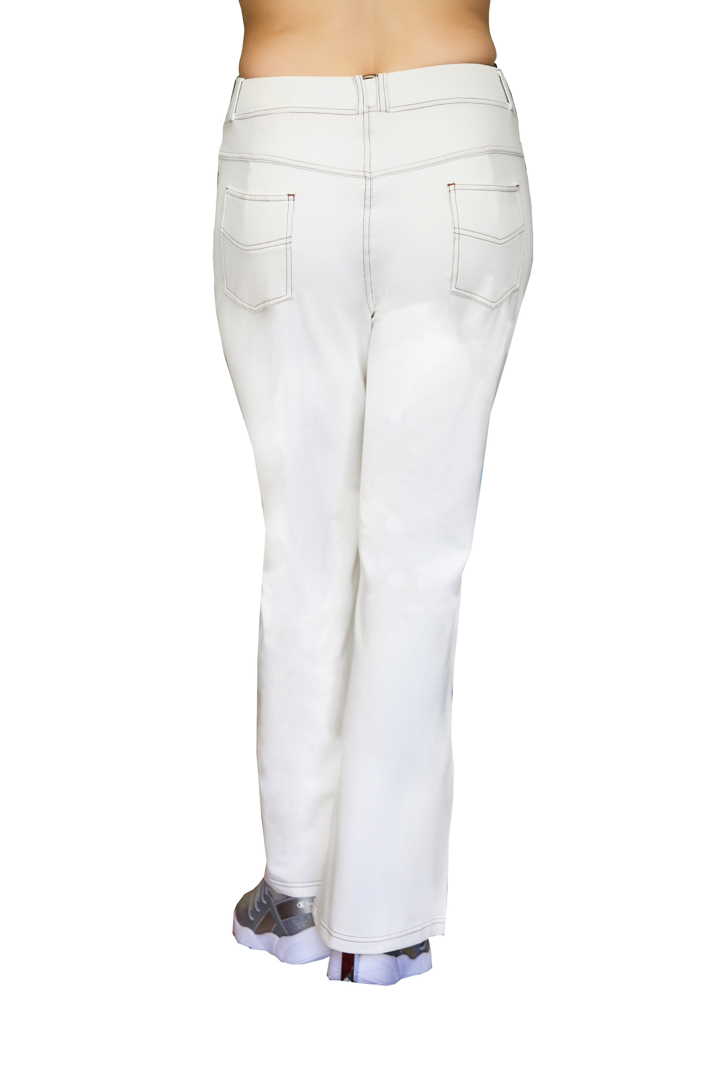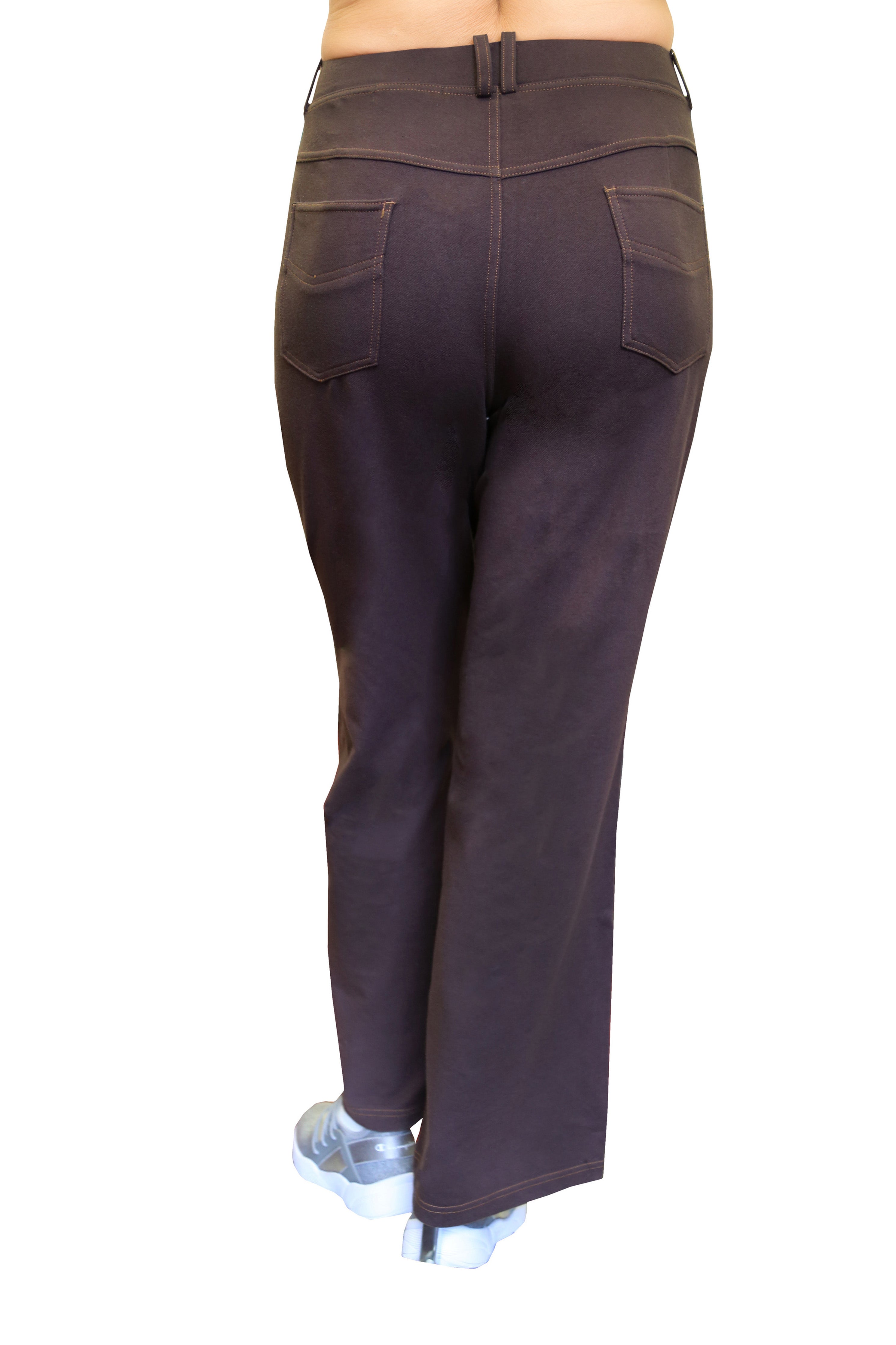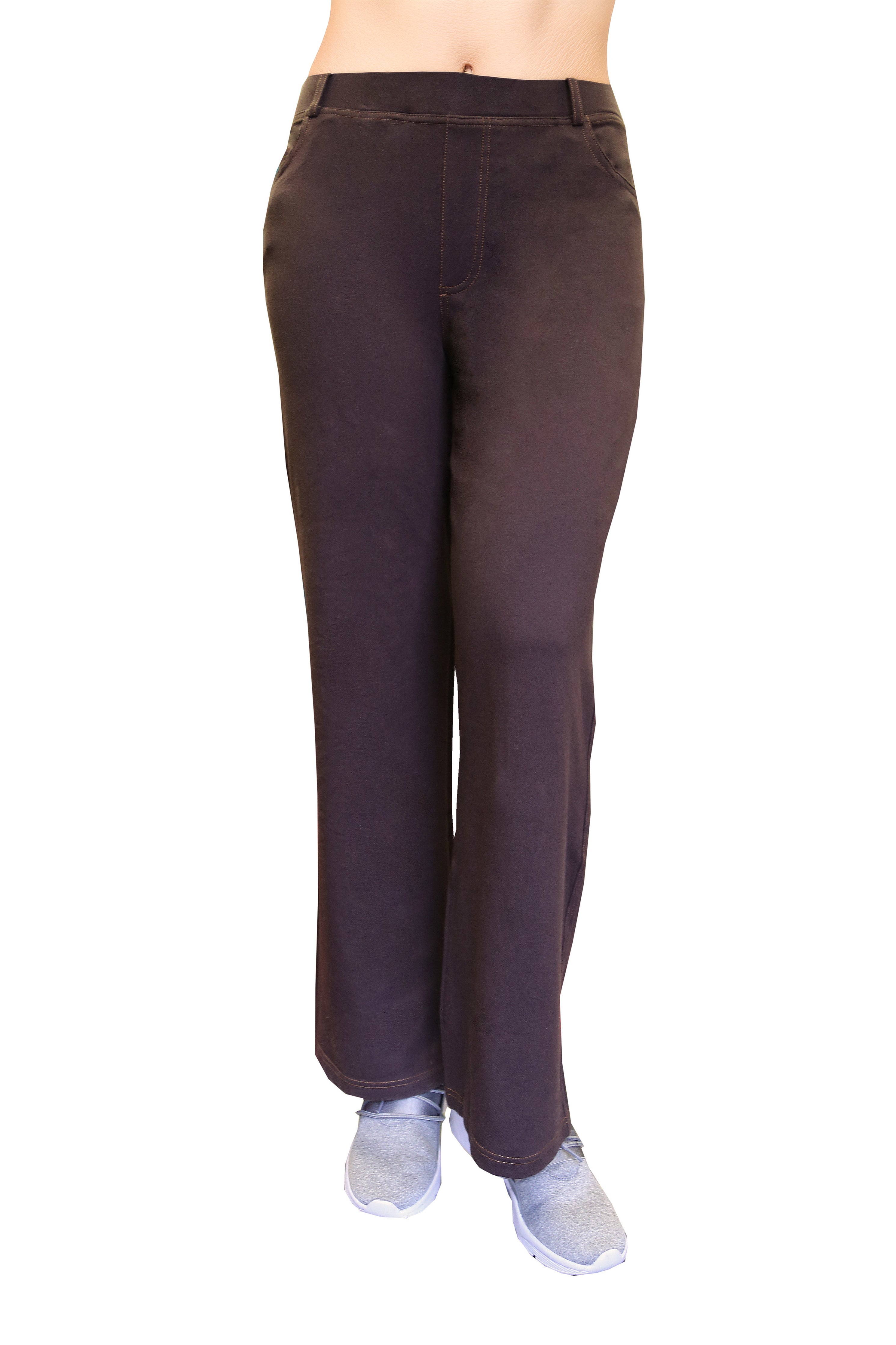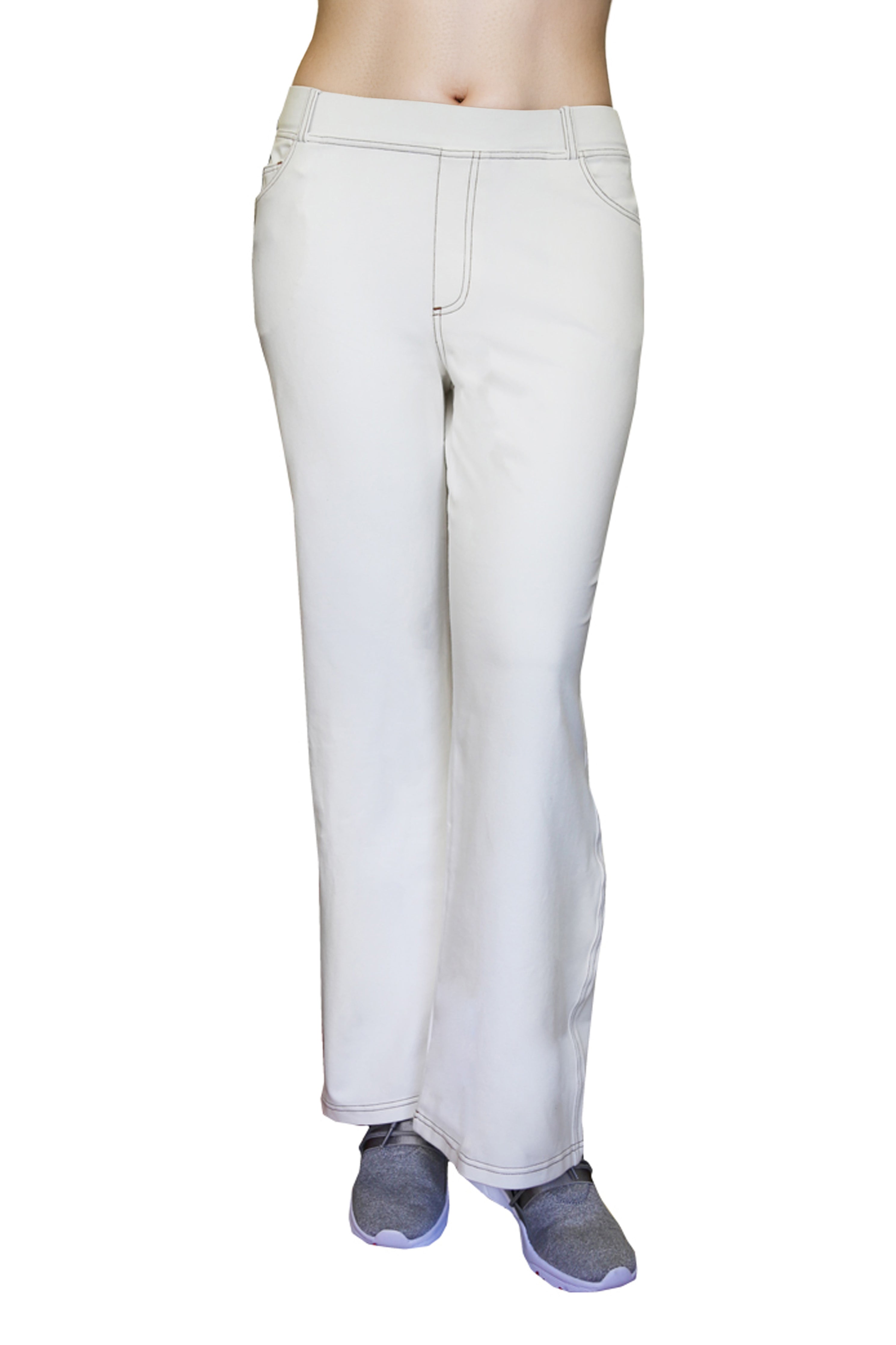 Made of incredibly soft comfort stretch, this pant has the appearance of denim. It features a 2" covered elastic waistband with belt loops and convenient 5 pocket styling with mock fly and contrast stitching