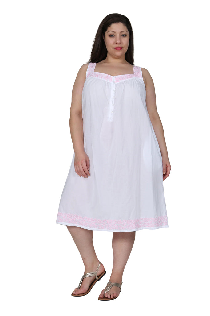 Simple and elegant, this La Cera White Peasant Gown will be one of your favorites. It features a square neckline with contrast embroidery. Details include button and loop closure at center front, side seam pockets, and embroidered hemline.