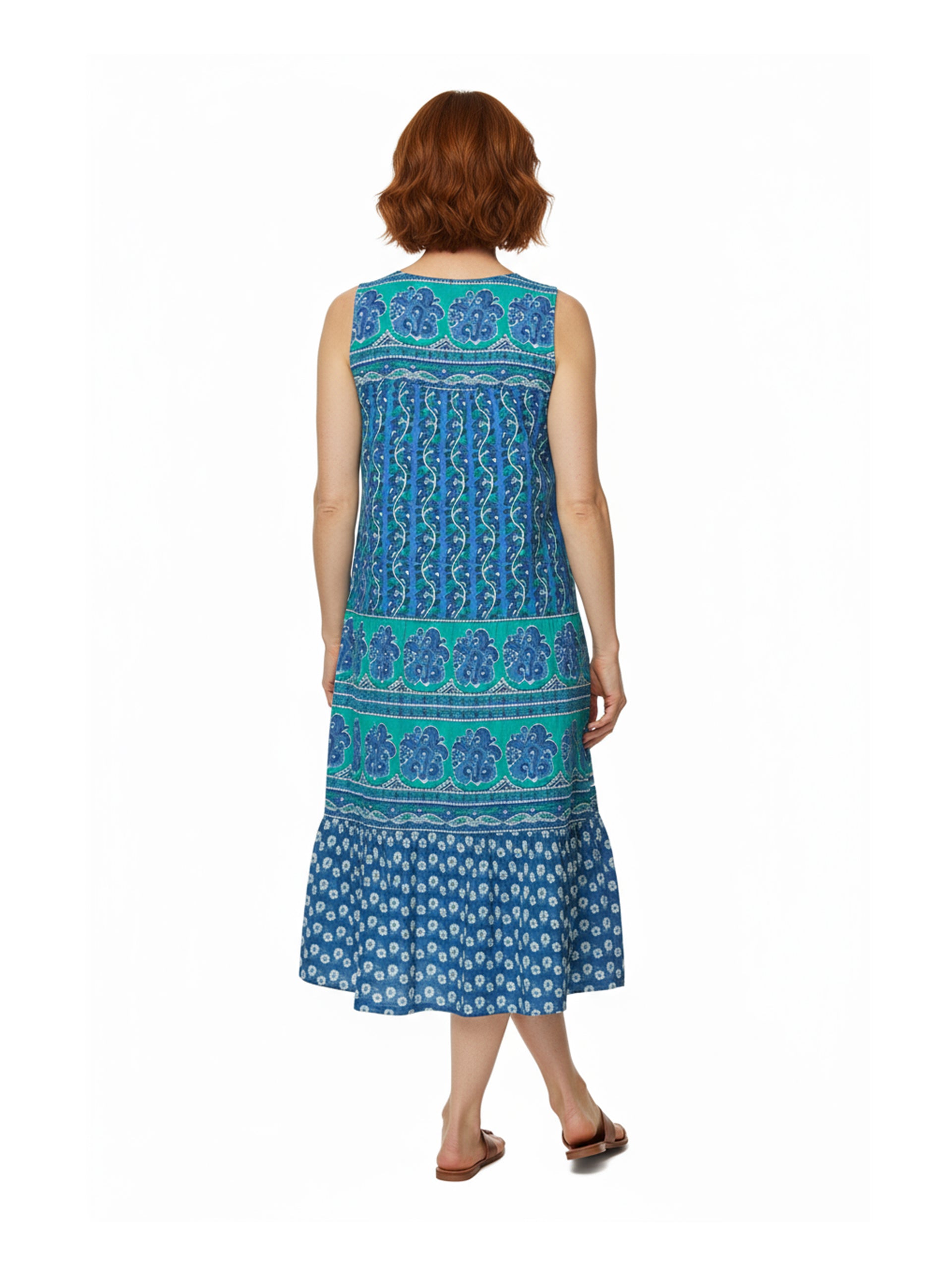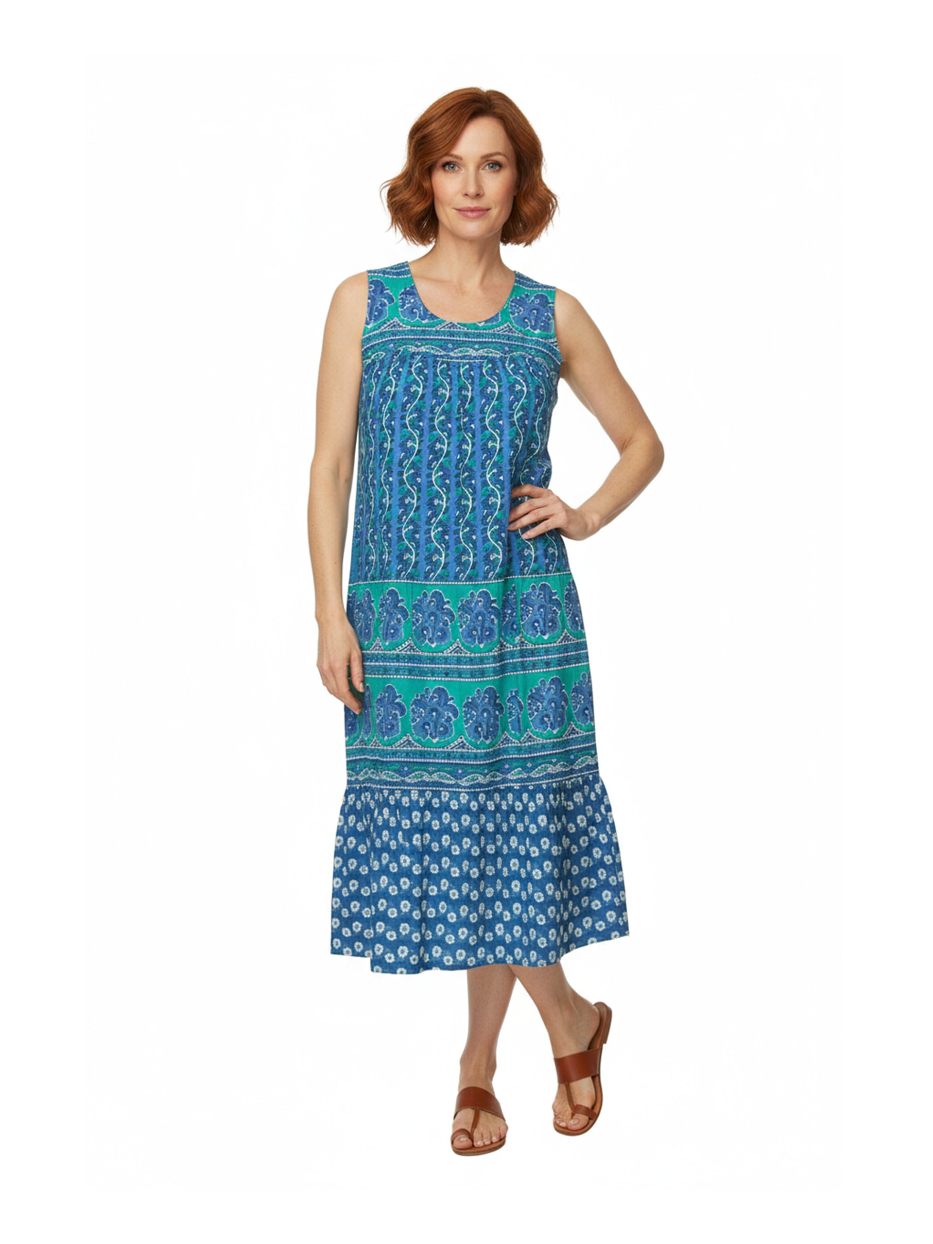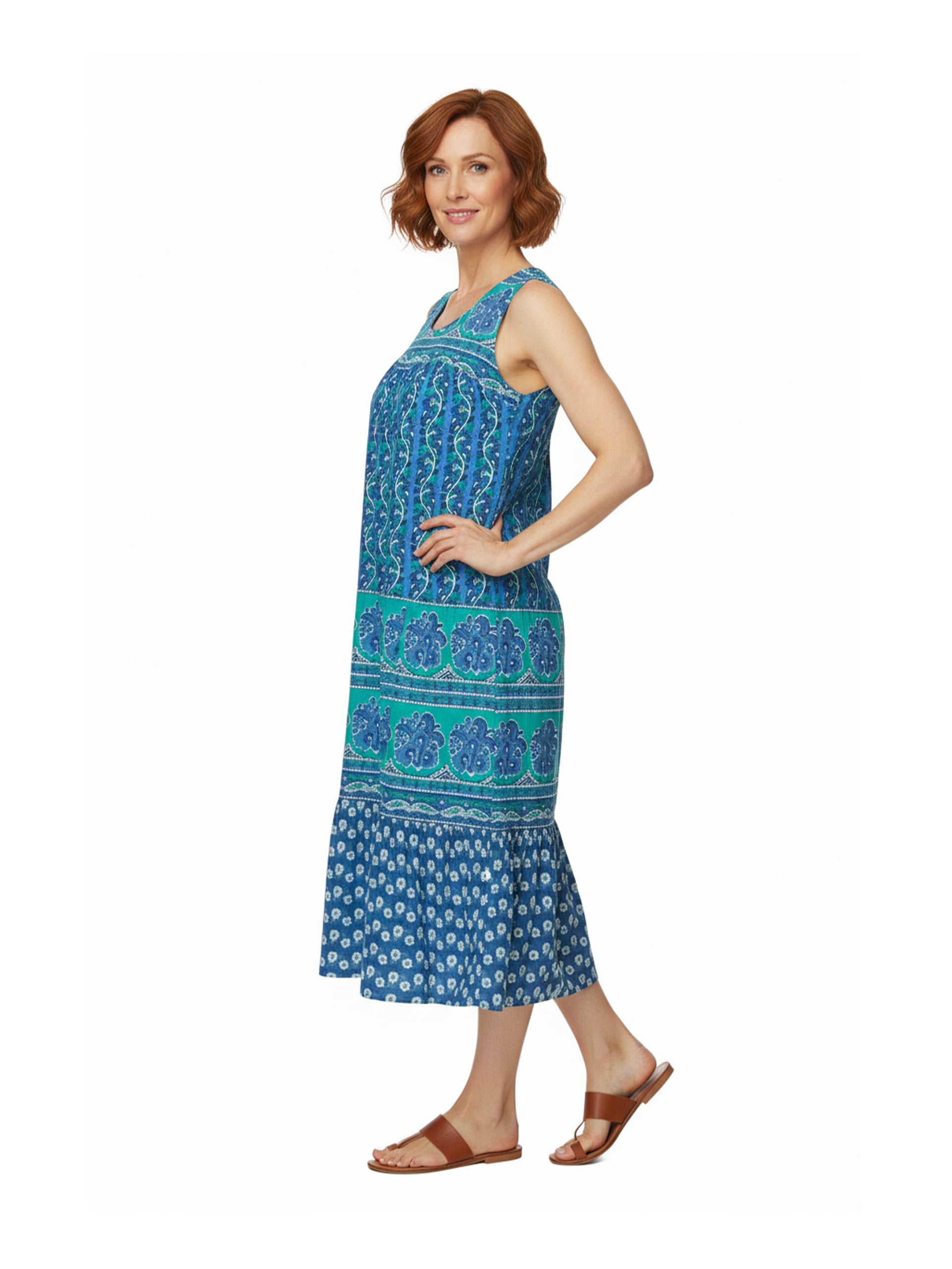 Indulge in comfort and effortless style with La Cera's Plus Size Border Print Dress. Made from 100% cotton, this sundress features an empire waist, round neckline, and quirky floral printed tiers that flatters your silhouette. With side seam pockets and a lightweight fabric, this mid-calf dress is perfect for any event. Elevate your wardrobe with this must-have piece! Imported.