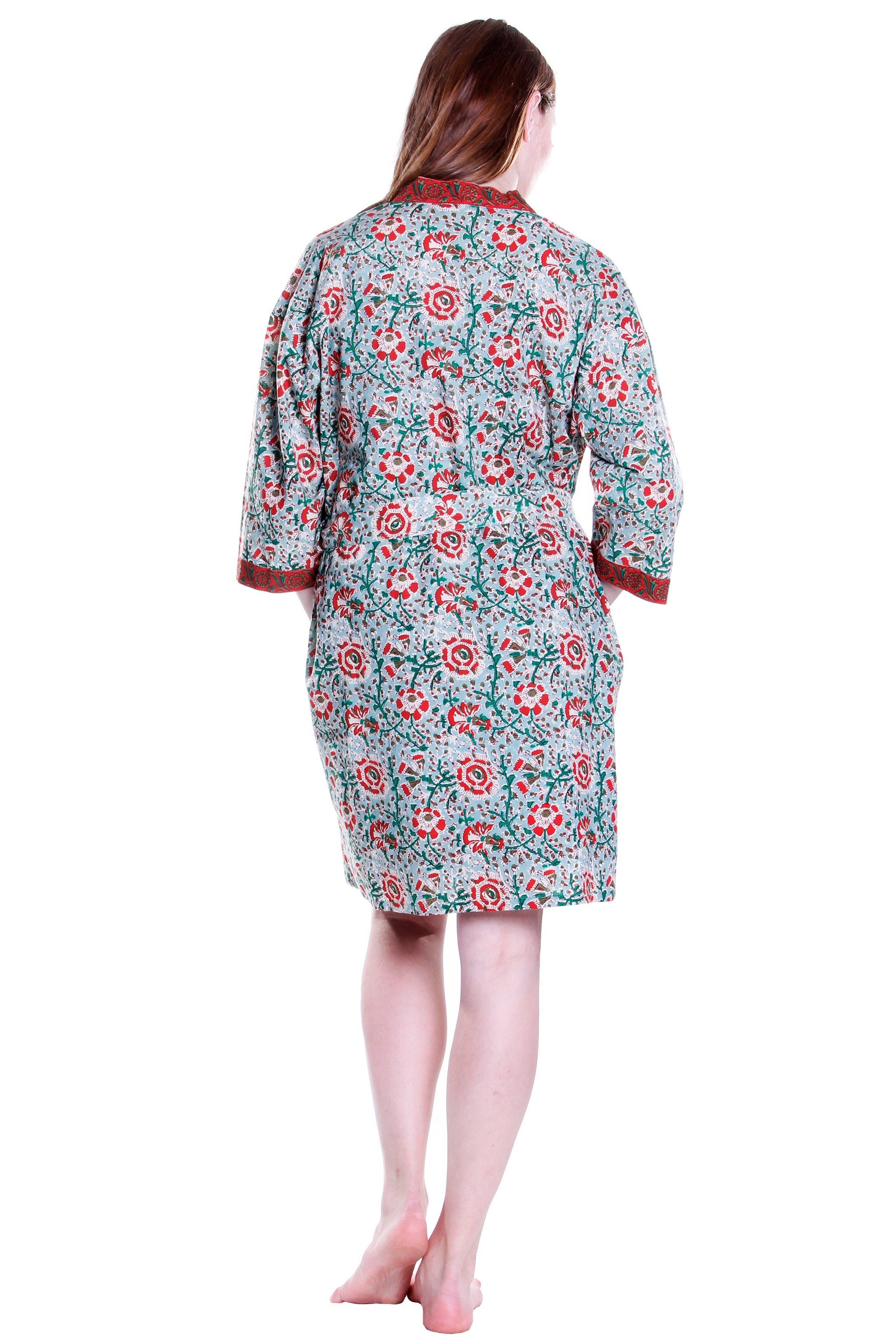 Esta hermosa bata presenta un diseño floral, mangas de un cuarto, un lazo en la cintura y dos bolsillos laterales. Cómodo y ligero, ¡no querrás quitártelo nunca!