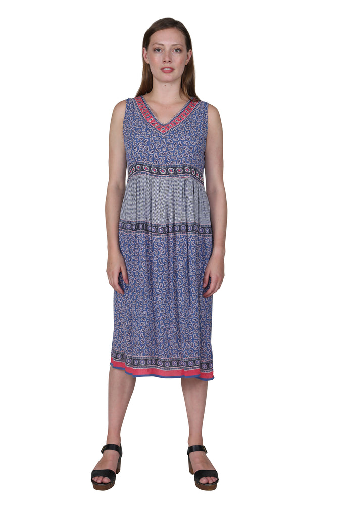 Casual yet cute, this dress from La Cera is a must-have for any woman's wardrobe. With a long-length, this sleeveless dress has a flattering empire waist and surplice.